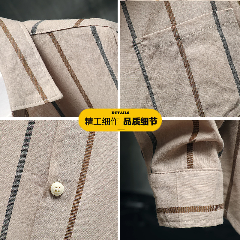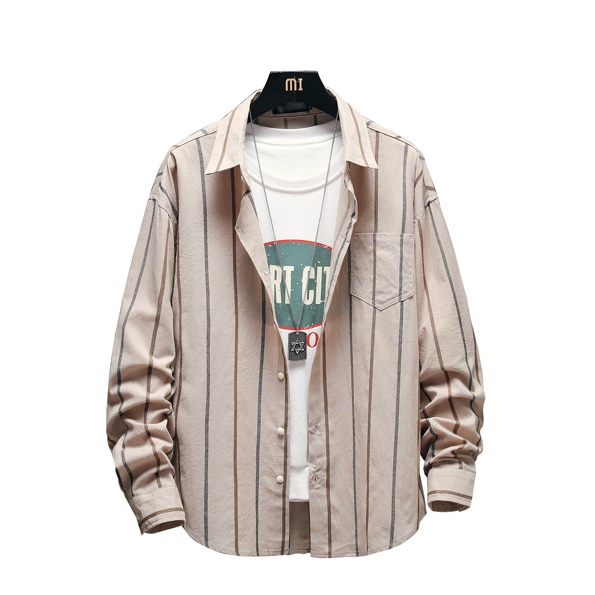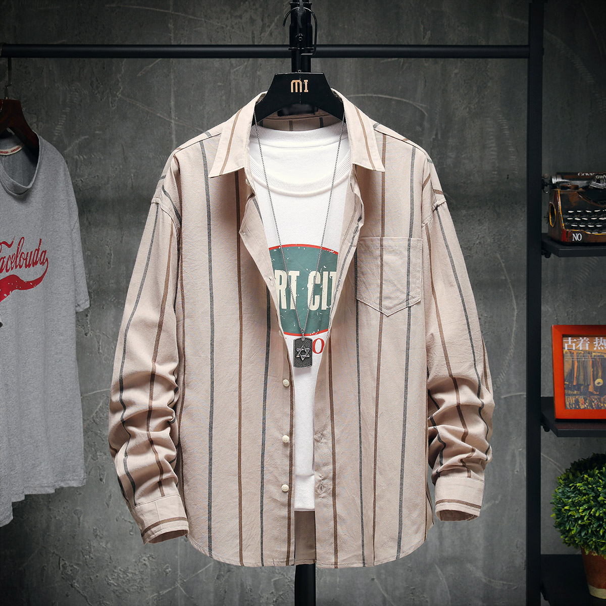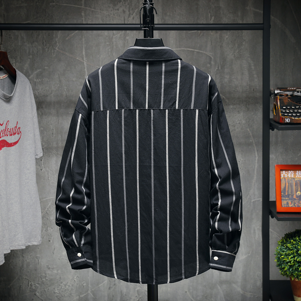 Black & White Striped Shirt Male Tide Day Ensemble Harbor Wind Loose Spring Long Sleeve Retro Handsome air shirt Korean version trendy blouse