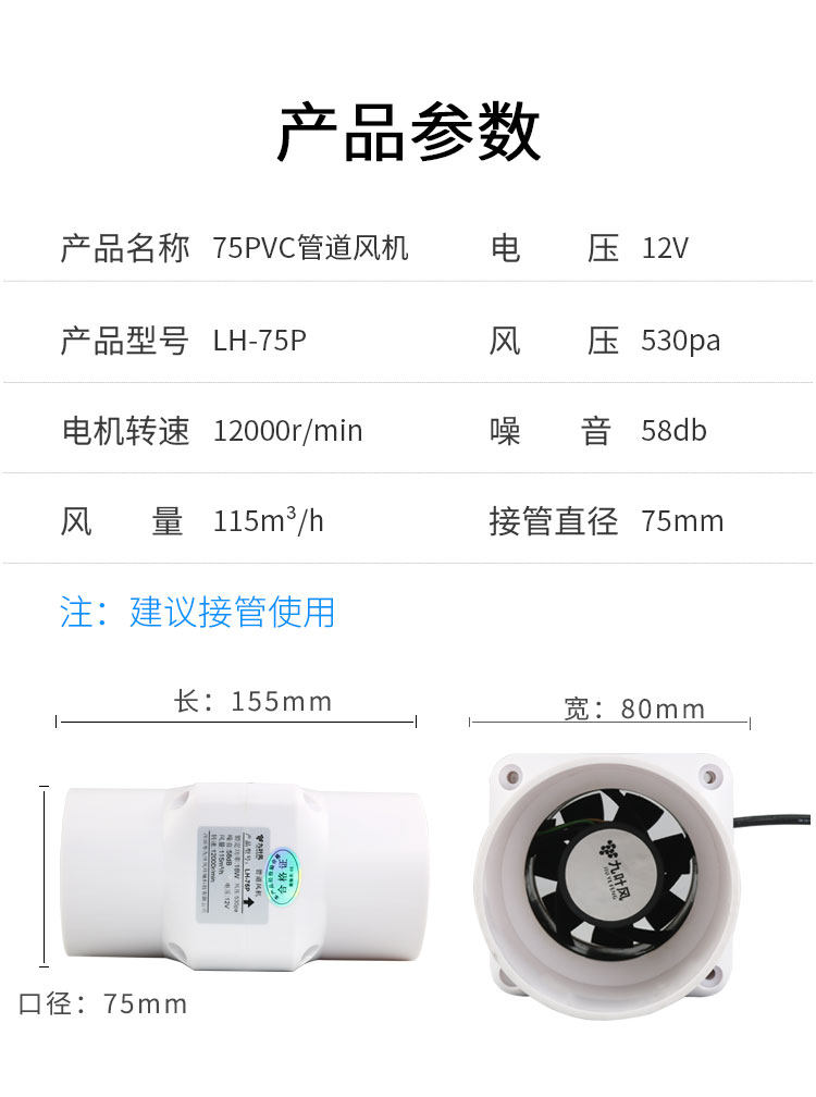 Nilo wind polar air polar control pipe fan strong 75 PVCMM mini - small 3 - inch exhaust fan smoking fan