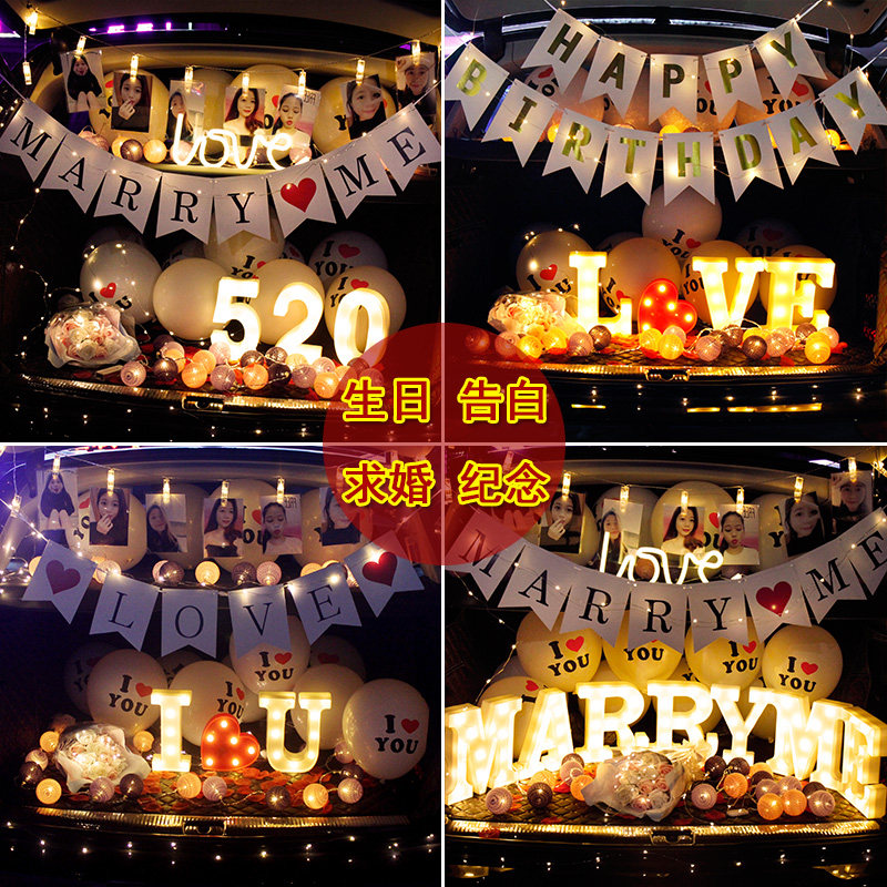 Valentine's Day Car trunk trunk Rose surprise Romantic confession Flower decoration Birthday decoration gift
