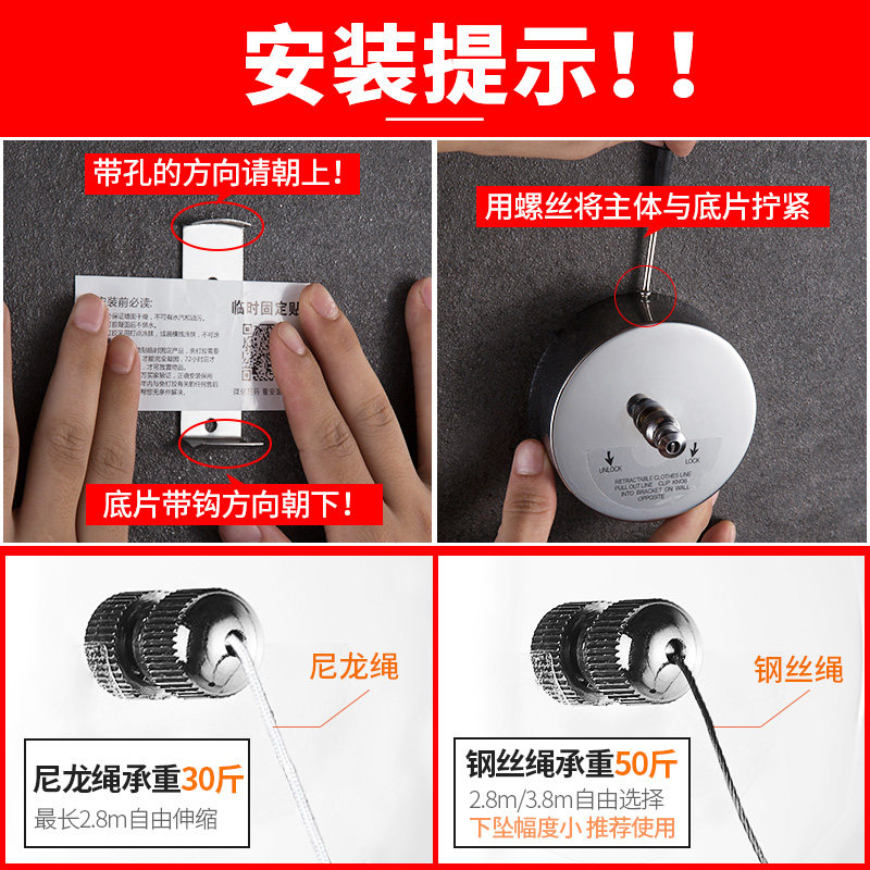 Free hole clothesline outdoor non-slip windproof stainless steel clothesline artifact balcony indoor invisible telescopic wire rope