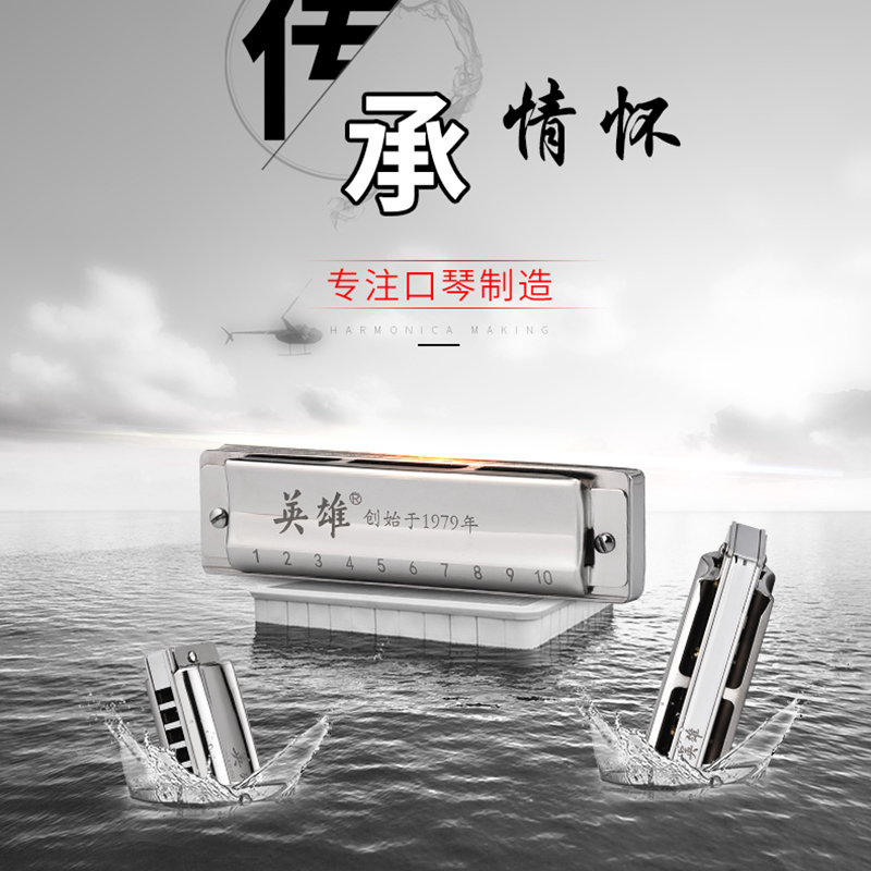 Hero Brass G ten Holes Full Metal Blues Harmonica Superior Adult Beginner Playing Grade Blues 10 Holes Harmonica