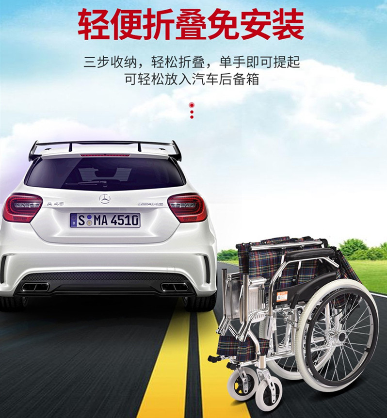 Foshan Oriental Wheelchair fs863 Light Folding Aluminum Alloy Wheelchair Portable Travel Trolley for Elderly People
