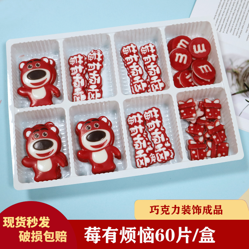 Chocolate Small Strawberry Cake Decoration Pendulum Pieces Cartoon Strawberry Bear Baking Sweet Pendulum Pieces Finished Edible-Taobao