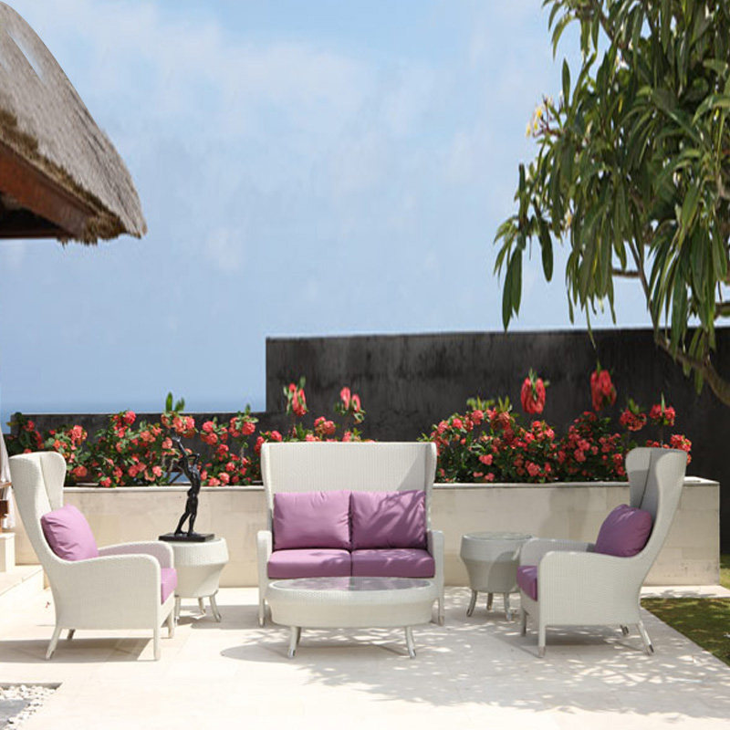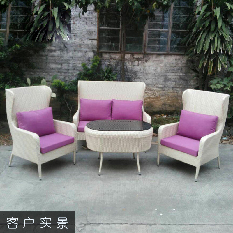 Building Dreams Home Outdoor White Rattan Chair Sofa Tea Table Villa Patio Garden Terrace for leisure Eurostyle Rattan Sofa
