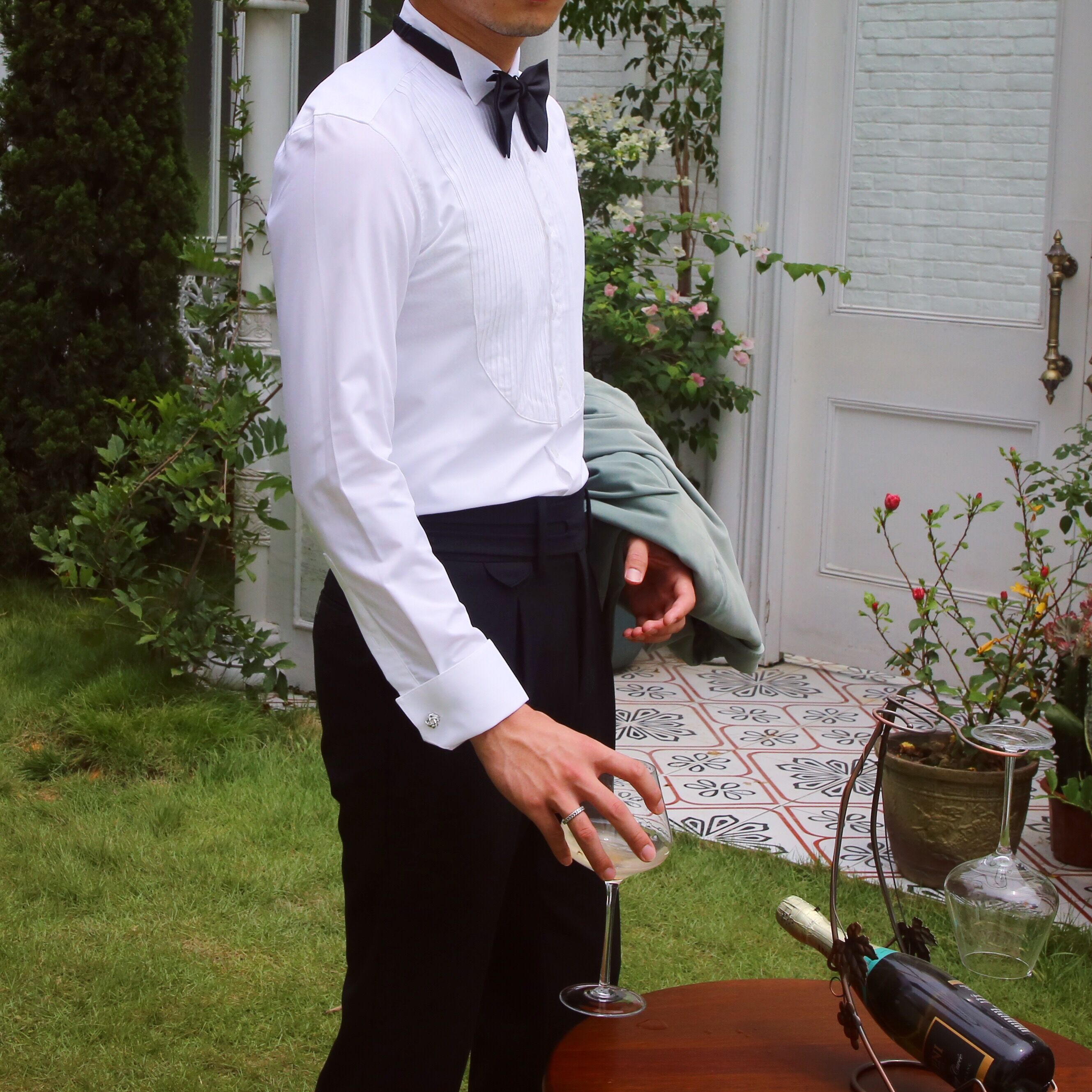 Mr Lu San French button shirt Men's long-sleeved slim fit free ironing groom cufflinks Business work formal men's white shirt