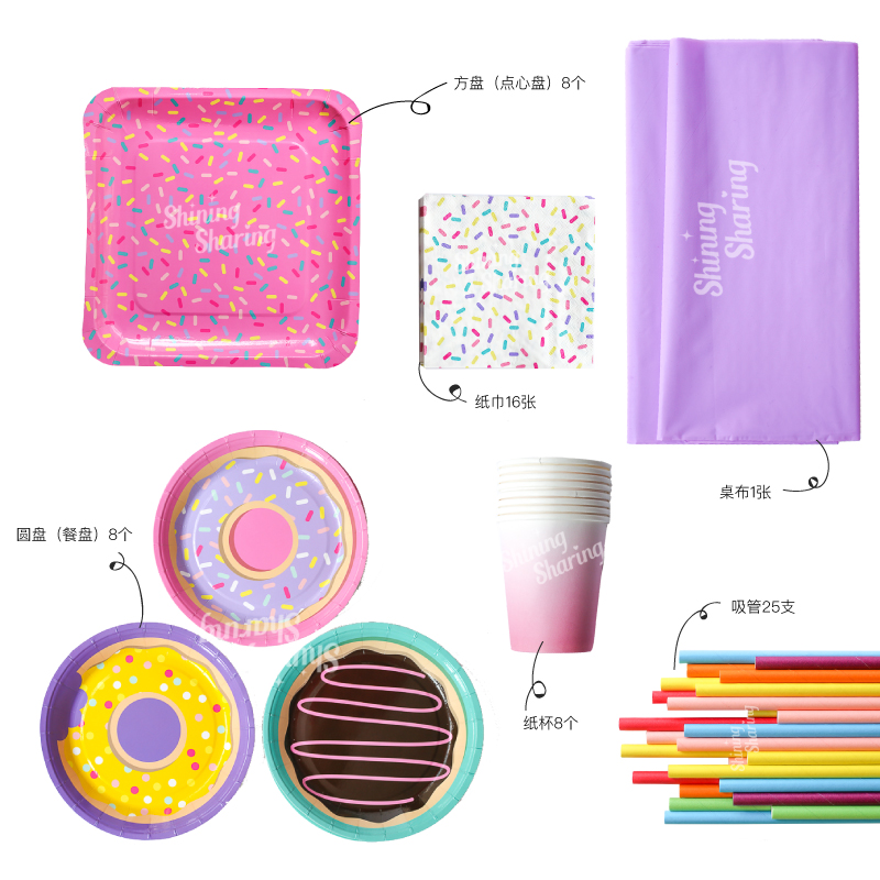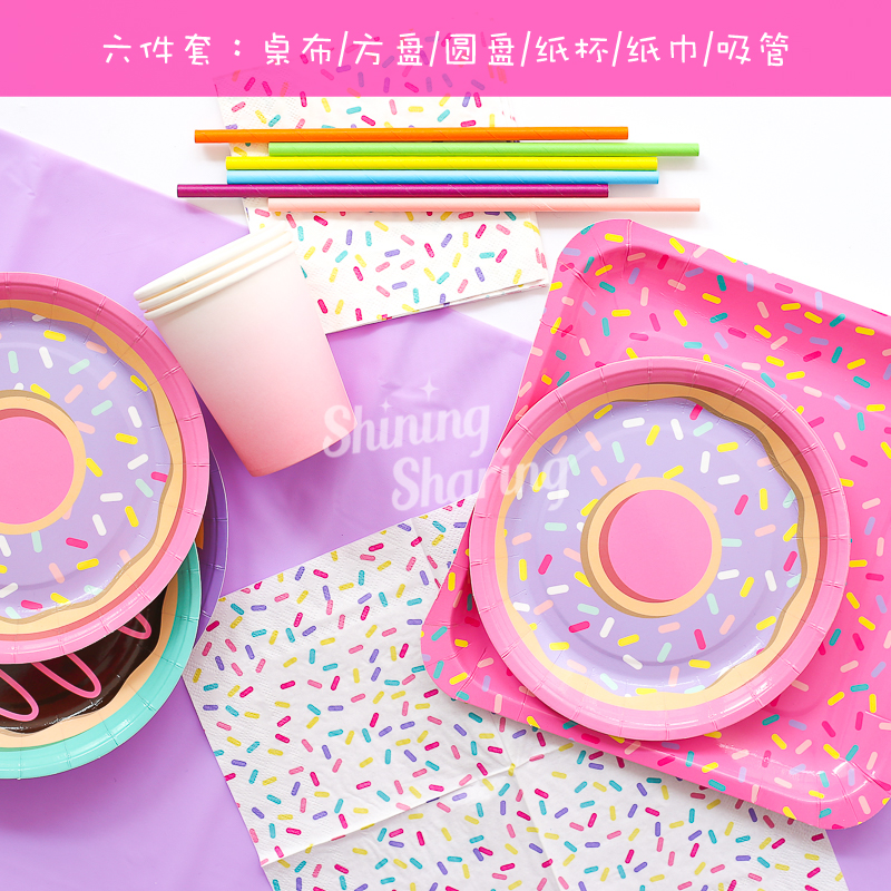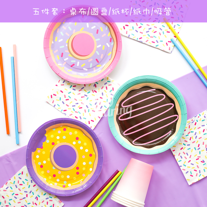 Original export donut themed candy series children's birthday party arranged dinner plate picnic plate 8 people