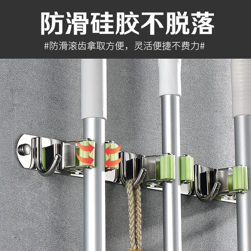 Mop Hook Hanger Free to punch Bathroom Wall Hanging Makeup Room Sweep the Mop Clip Holding the Divine Instrumental Powerful Sticky Hook