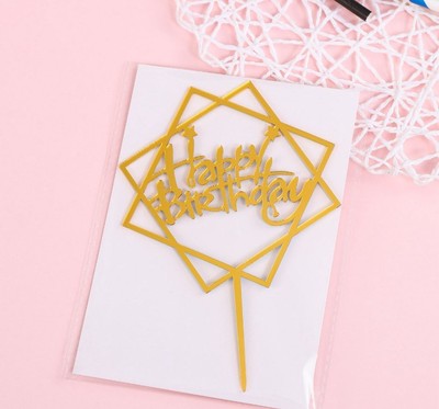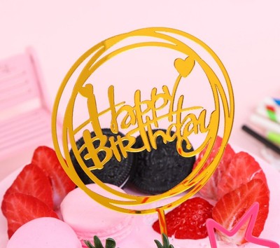 New Cake Decoration Inserts Golden Shiny Acrylic Inserts Happy Birthday Cake Swing Piece Baking Accessories
