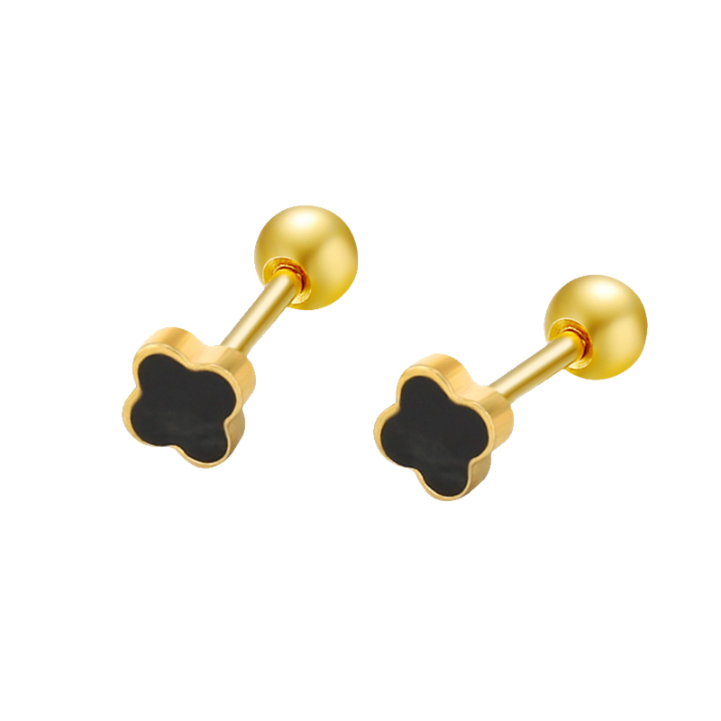Japan-ROK Chater Neutral Cold Light Wind Titanium Steel Earpin Four-leaf Straw Screw Ball One-piece Earbone Nail Earrings Earrings Earrings Earrings