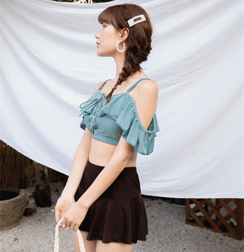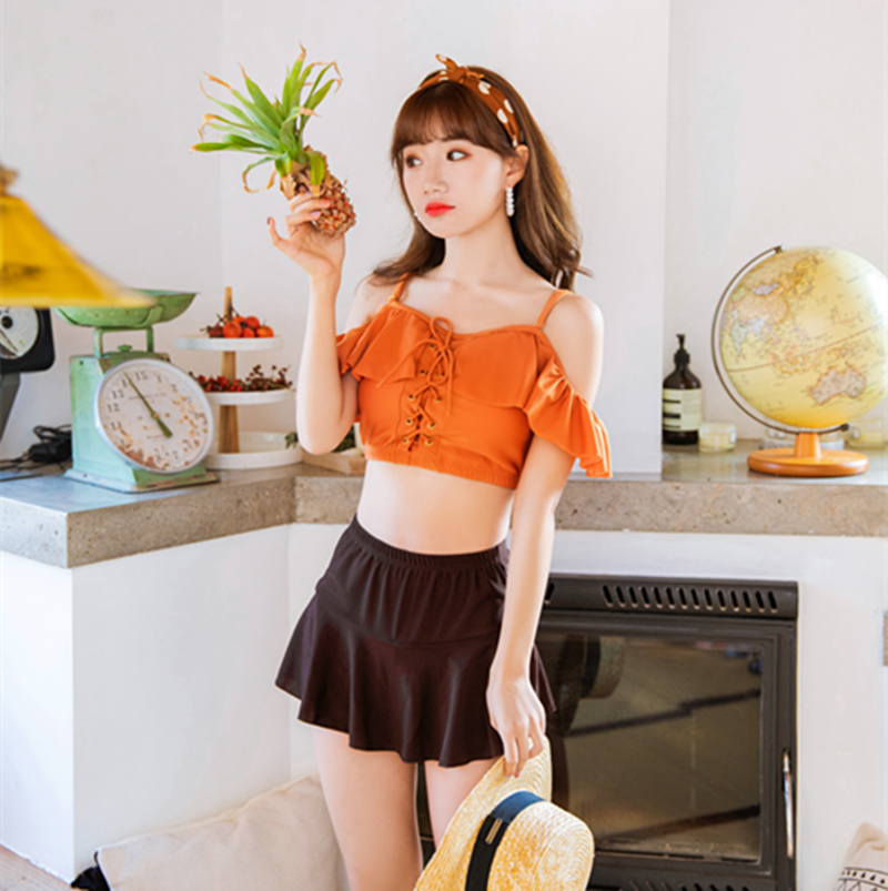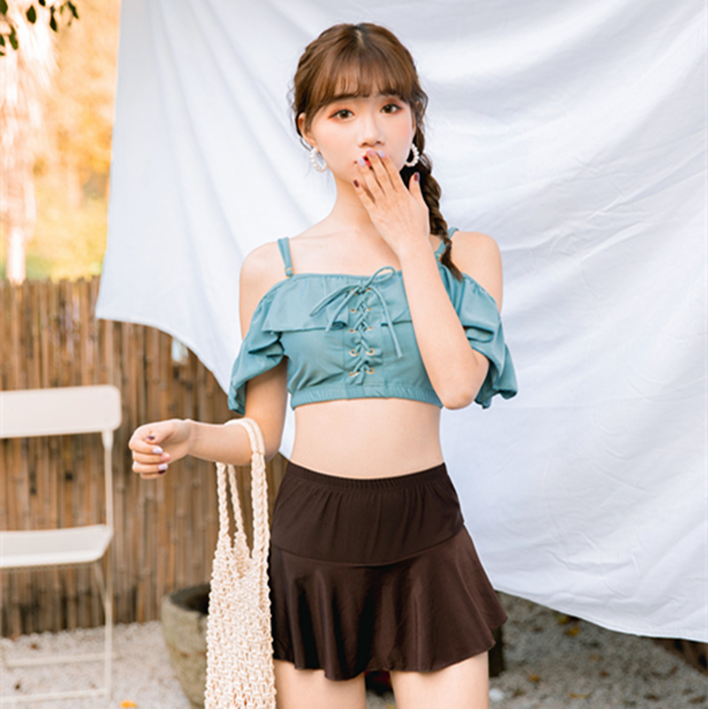 Swimsuit female conservative student Two style small breasts gather 20 years new swimsuit Slim Dress Type Flat Corner Spa Swimsuit