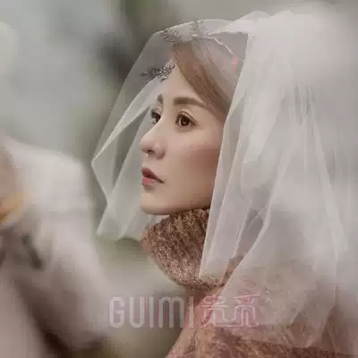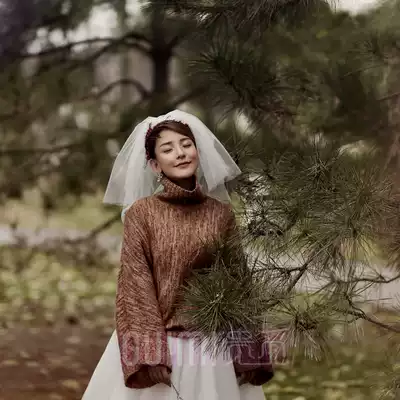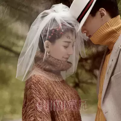 Double-layer short bride photo puffy photo Forest wedding dress headdress super fairy collar card registration small veil