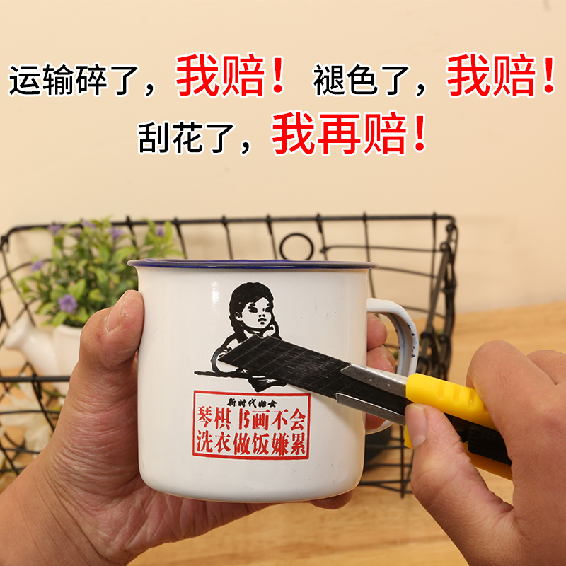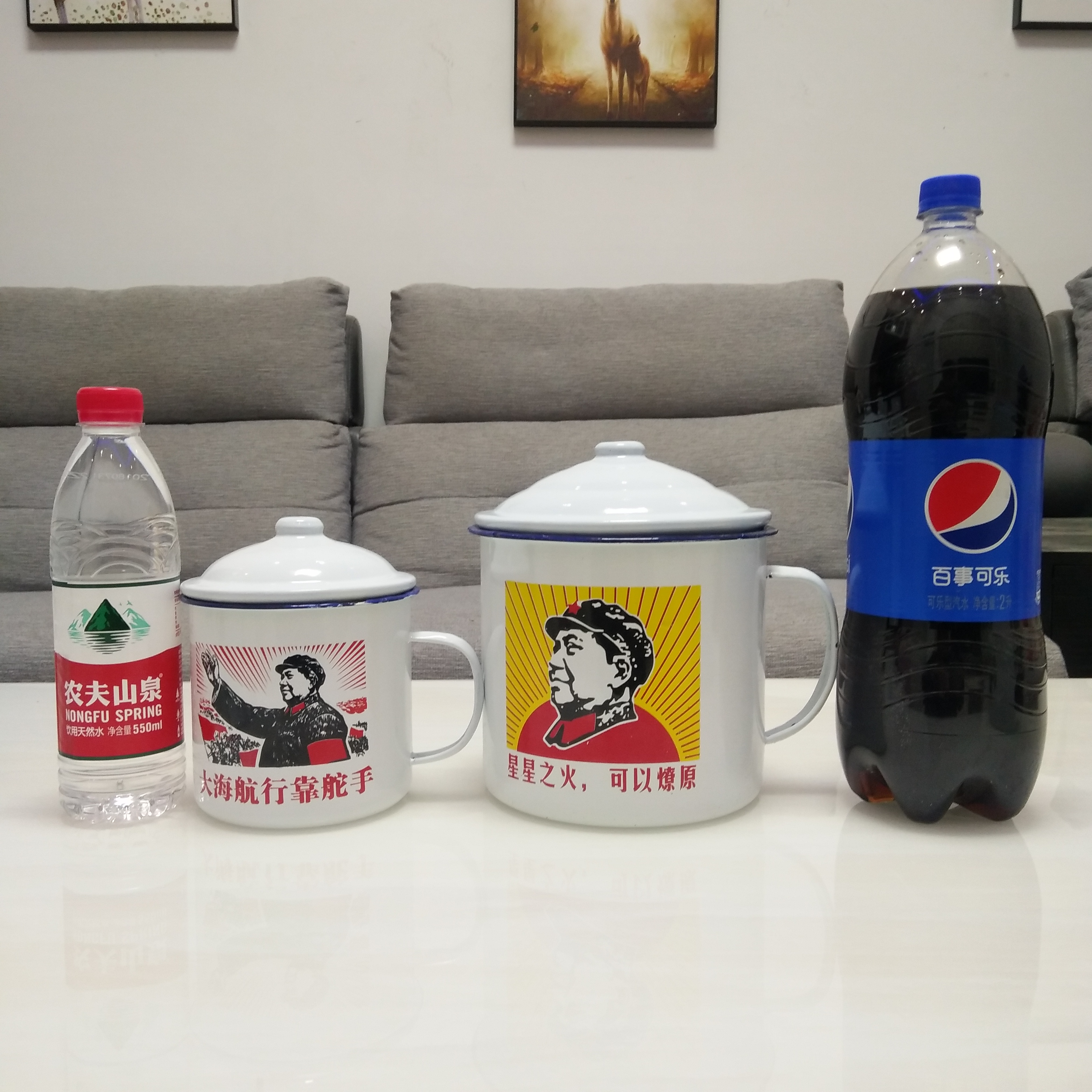 12cm double happy enamel cup (with white cover) 12cm quotations enamel cup with cover pattern randomly hair Yin Zheng same 16cm double happiness Cup pattern random 16cm quotation enamel cup with lid flower pattern