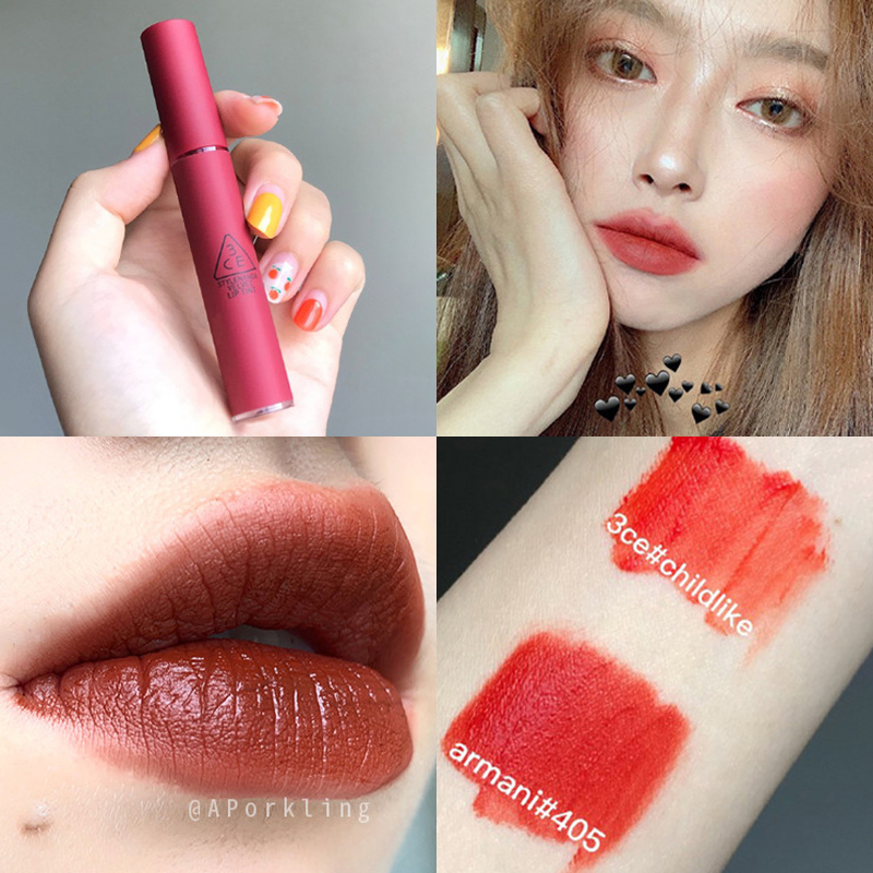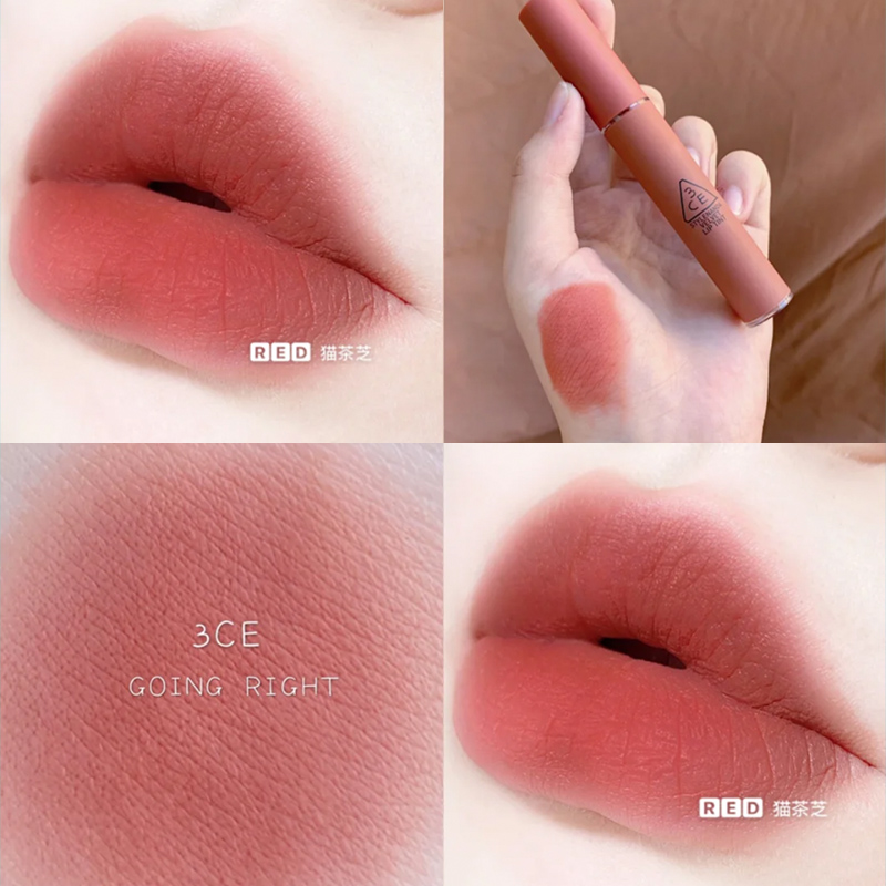 3ce lip glaze velvet lipstick taupe brick red matte autumn winter niche brand speakup red pear color bitter coffee