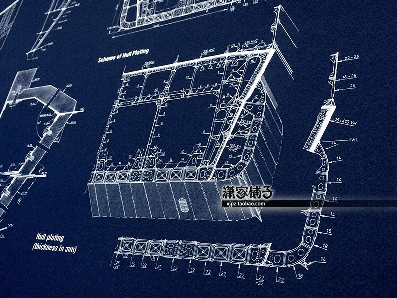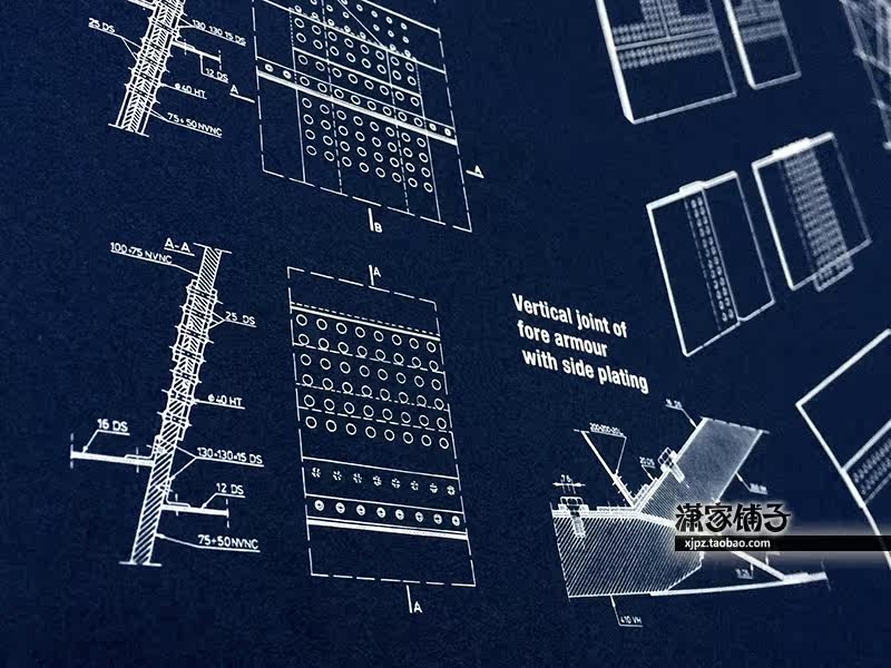 Pacific Naval Battle Yamato Type Battleship Armor Structure Diagram (6) Blueprint Poster Decoration