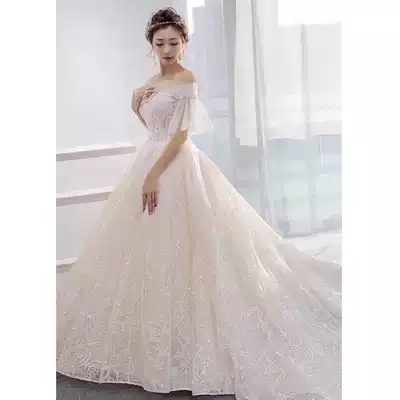 Wedding dress 2021 new bride French wedding word shoulder line Super fairy dream simple temperament big tail