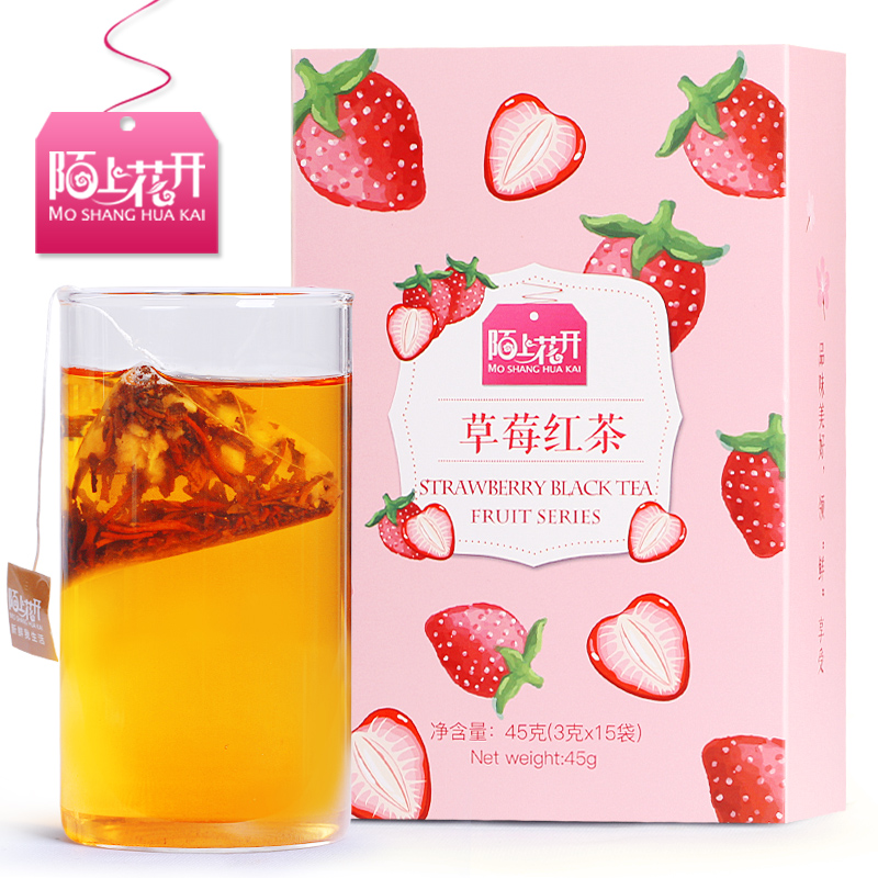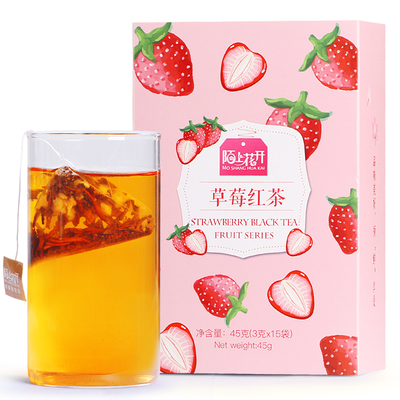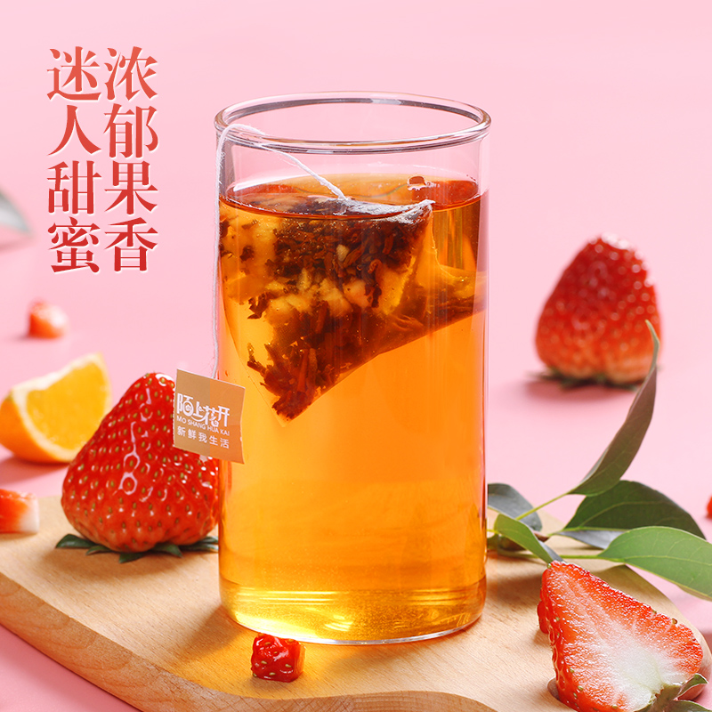 Buy 1 send 1 strawberry black tea fruit black tea flower fruit tea triangle tea bag combined cold brew hot bubble bag bubble water to drink
