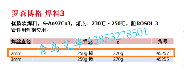 Rosenborg welding wire solder tin wire solder diameter 2mm 45257 45257 250g