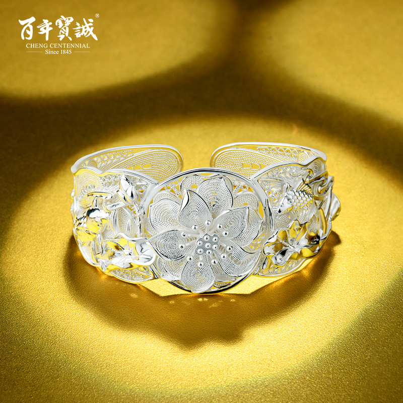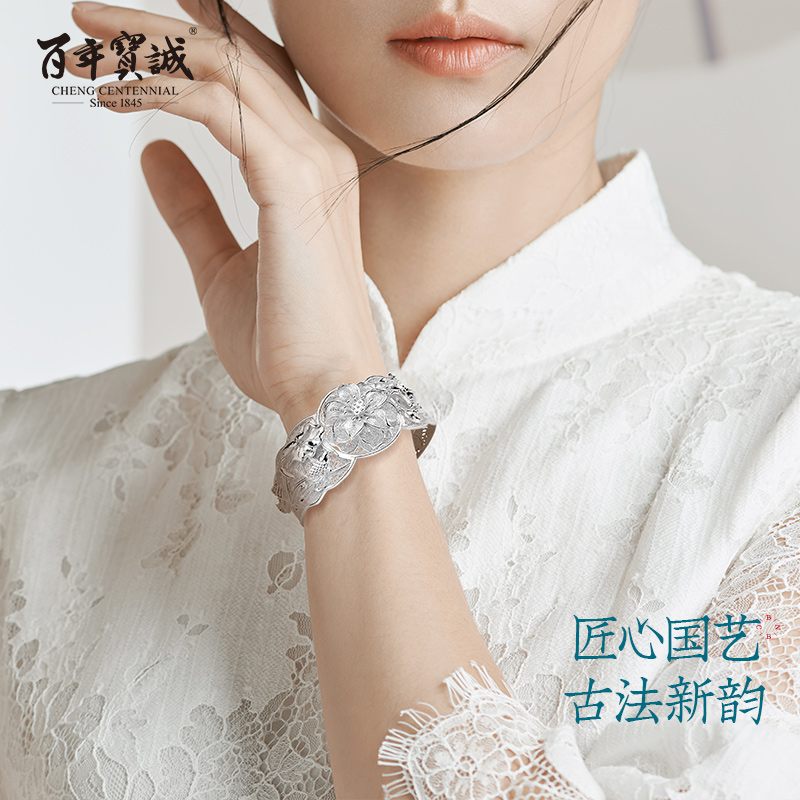 Centuries-old Baocheng non-relic handmade silk silver bracelet Women's wide version of the country wind foot silver green silk bracelet to send mama's bestie bracelet
