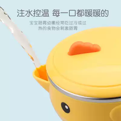Goryeobaby children's tableware stainless steel anti-drop bowl suction bowl baby water injection bowl non-staple food insulation Bowl