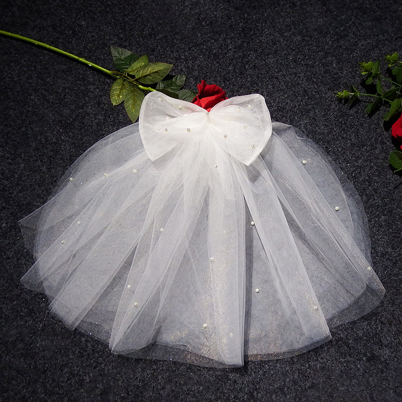 Parent-child mother-daughter children short veil bow bride wedding main wedding headdress certificate net red photo props