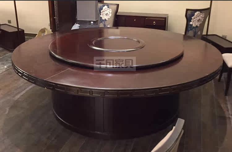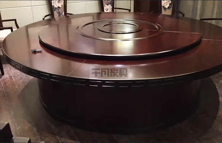 Hotel large round table modern Chinese hotel club box solid wood hot pot round dining table and chairs electric manual round table