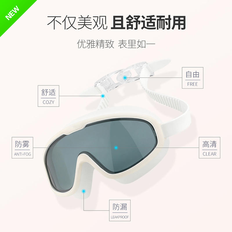 2019 new men's large frame transparent swimming goggles waterproof and anti-fog HD electroplating professional swimming glasses ladies adult