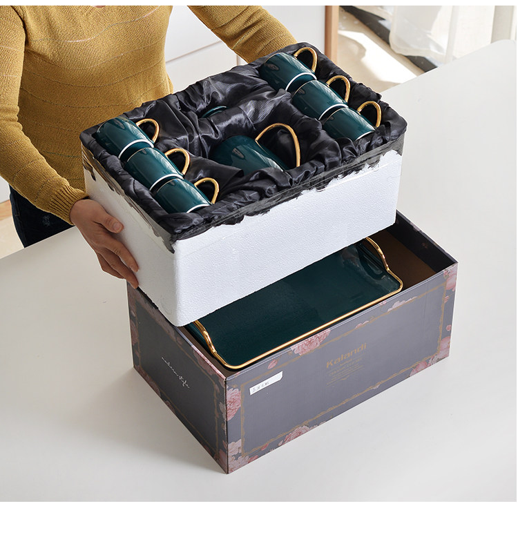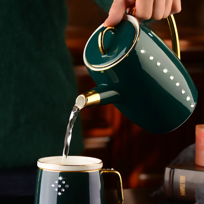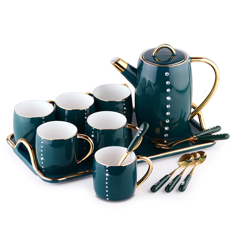 Naughty Xuan Inlaid Drilling Luxurious Ceramic Coffee Cup Suit Home Tea Set With Chinese Style Black Tea Cups Customised