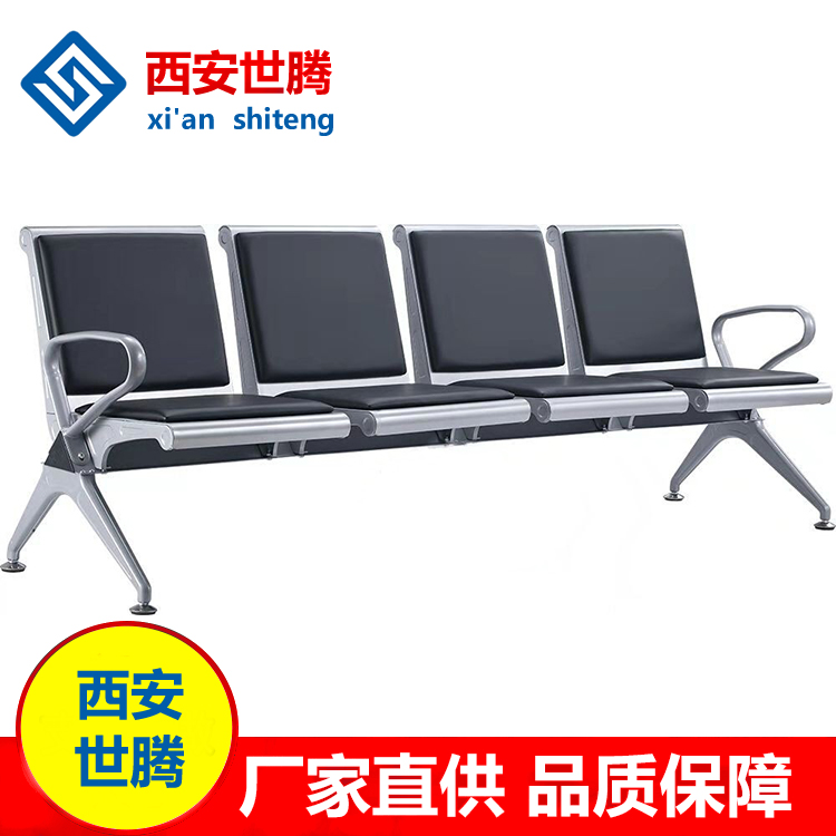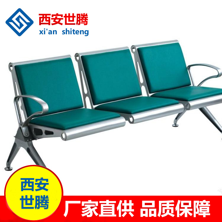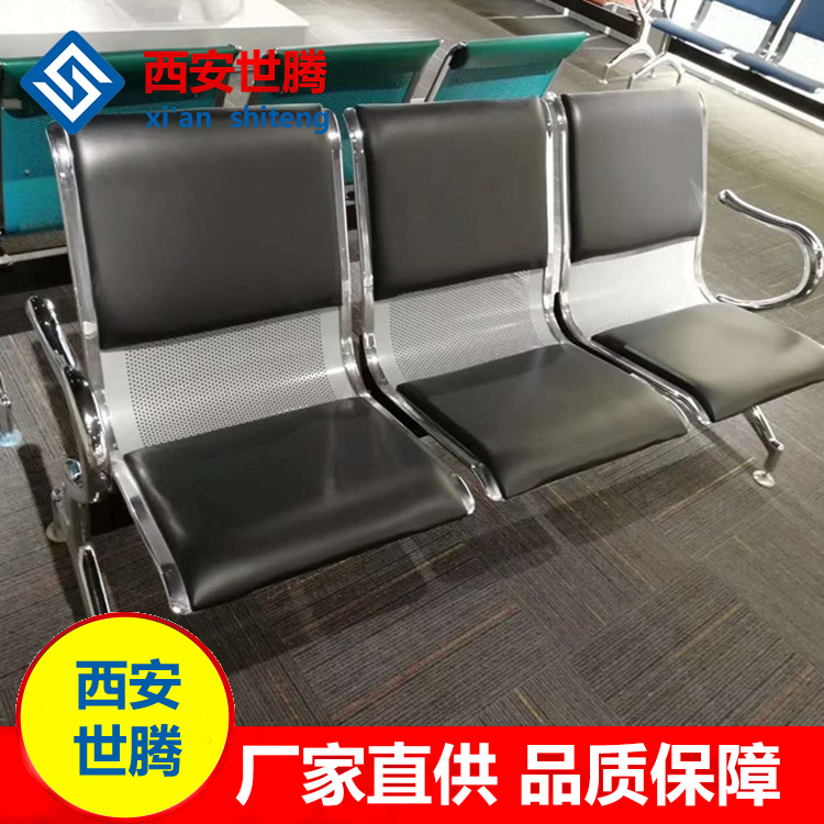 Airport waiting chair high-end three-person PU public seat railway station stainless steel waiting chair aluminum alloy back chair