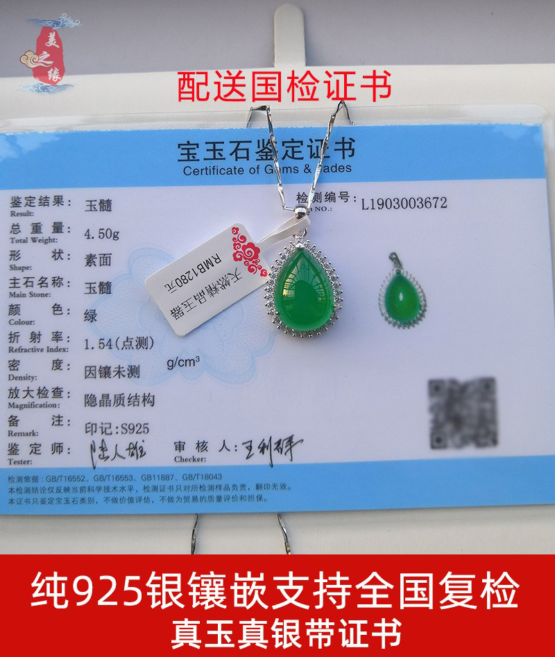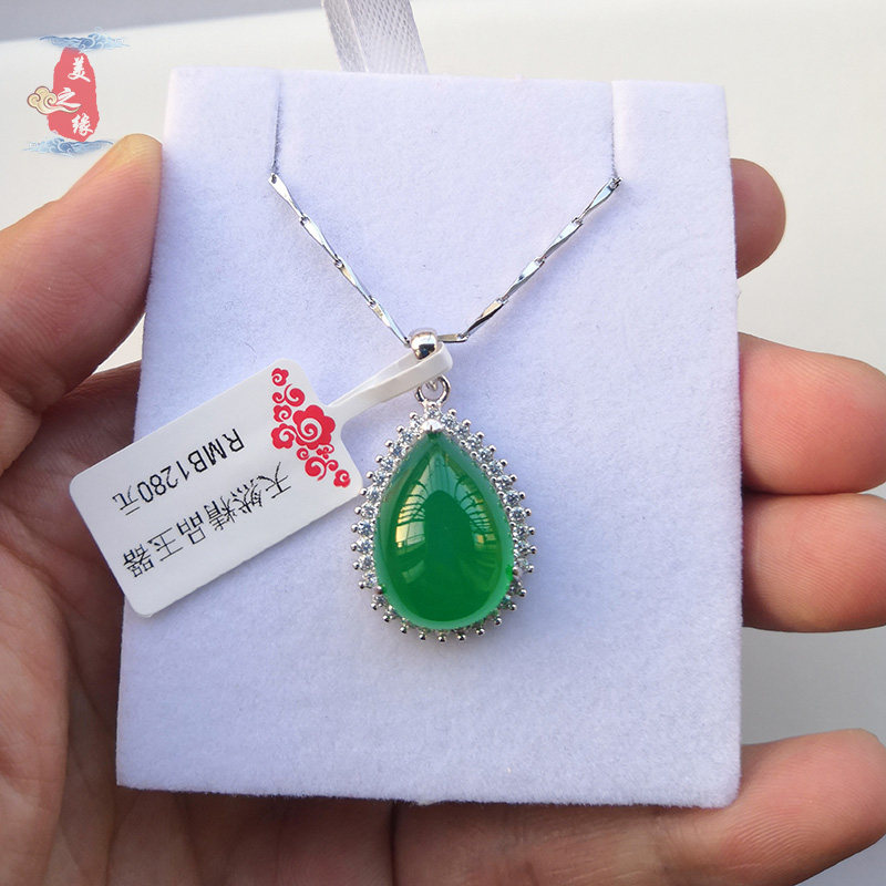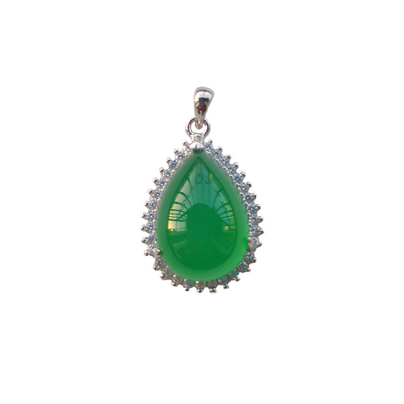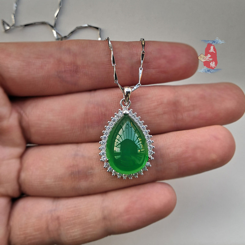 Natural Chalcedony necklace pendant Women's short gemstone pendant Emerald pure 925 silver inlaid crystal clavicle chain