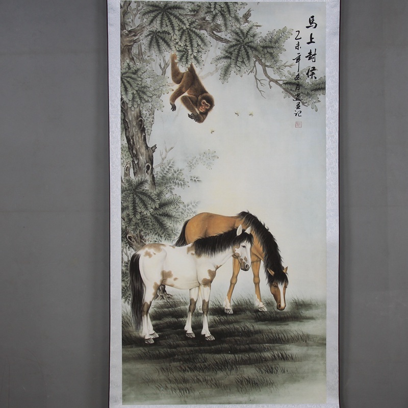New products Chinese framed calligraphy and painting Celebrity Hung Painting Country Painting Calligraphy calligraphy and painting antique made of old decoration painting Monkey Two Ma