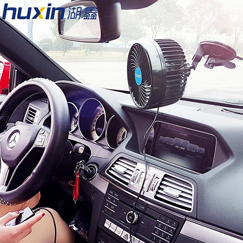 Huxin car fan 12v suction cup type single head 6 inch 24v large truck electric fan infinite speed regulation strong wind cooling