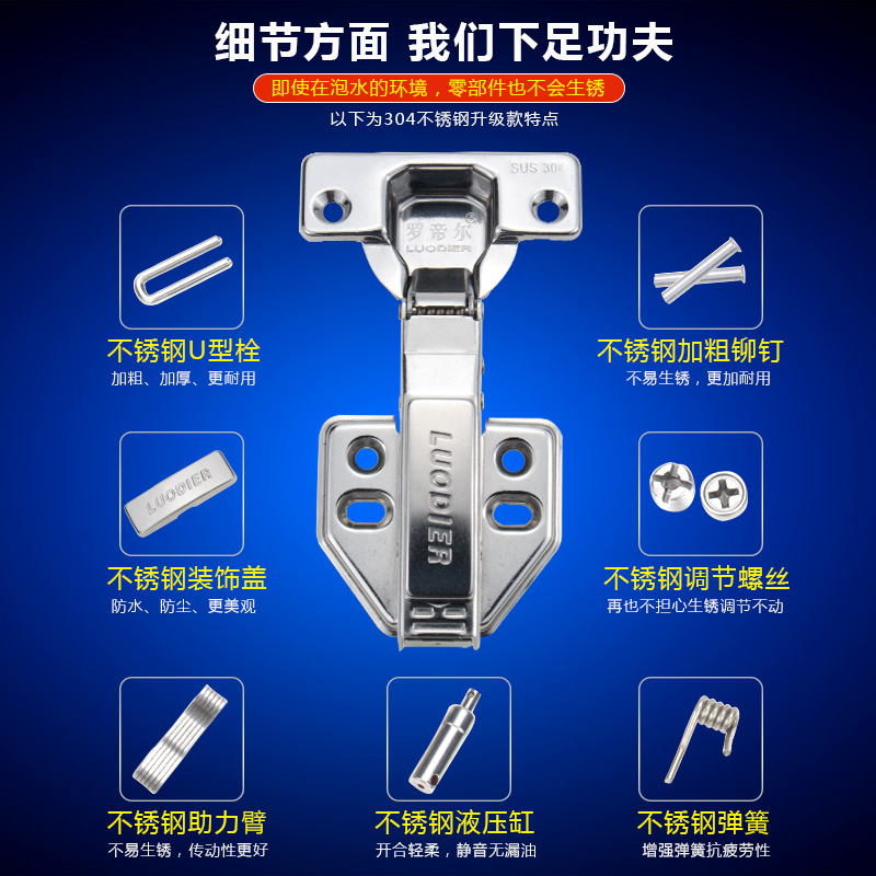 Roemir Hinge 304 Stainless Steel Hydraulic Damping Cushion Straight Mid-Bend Wardrobe Whole Cupboard Door Tobacco Fighting Plane Hinge