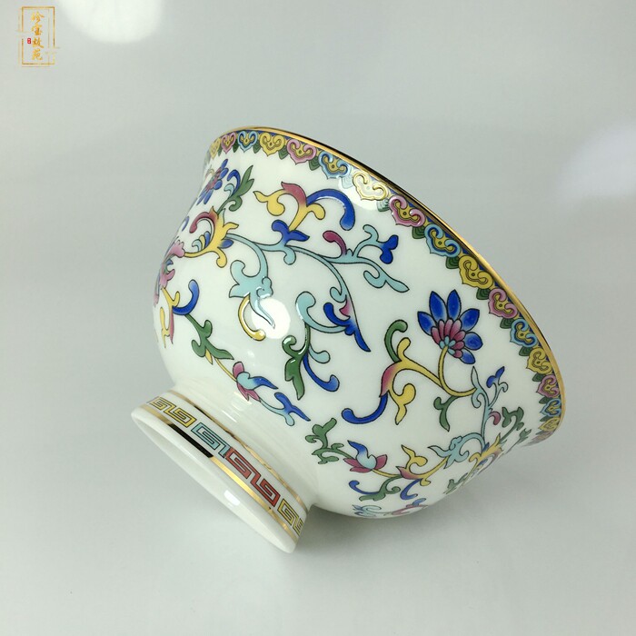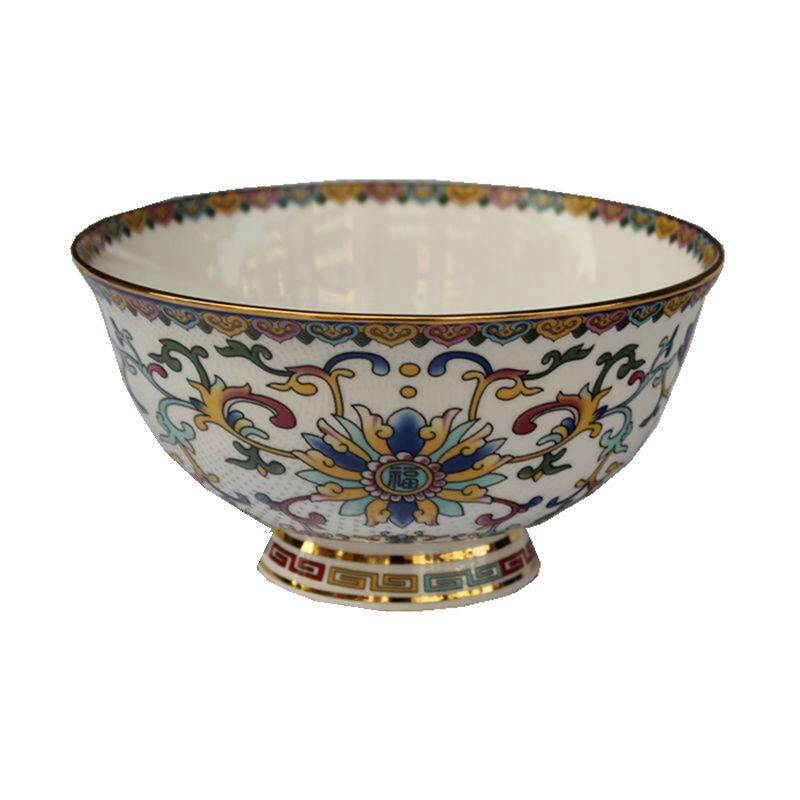 Jingdezhen ceramic bowl Antique Phnom Penh pastel Wanhua bone china bowl Household high foot porridge rice bowl ornaments porcelain bowl