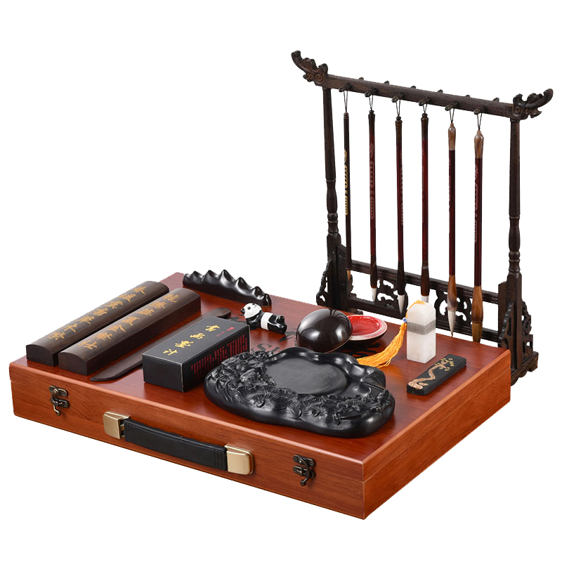 Nuoshinuo Wenfang four treasures set Pen ink paper inkstone Adult inkstone Brush holder Pen hanging brush calligraphy method for beginners Introduction to Wenfang supplies Pen holder brush gift box for beginners Brush practice posts