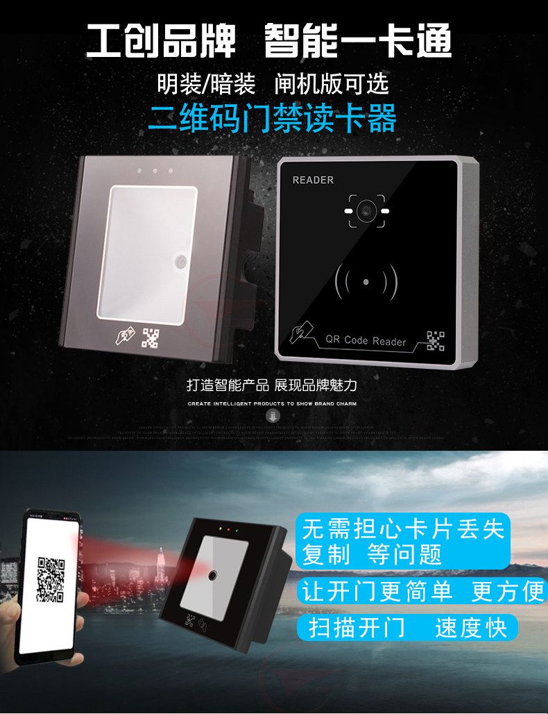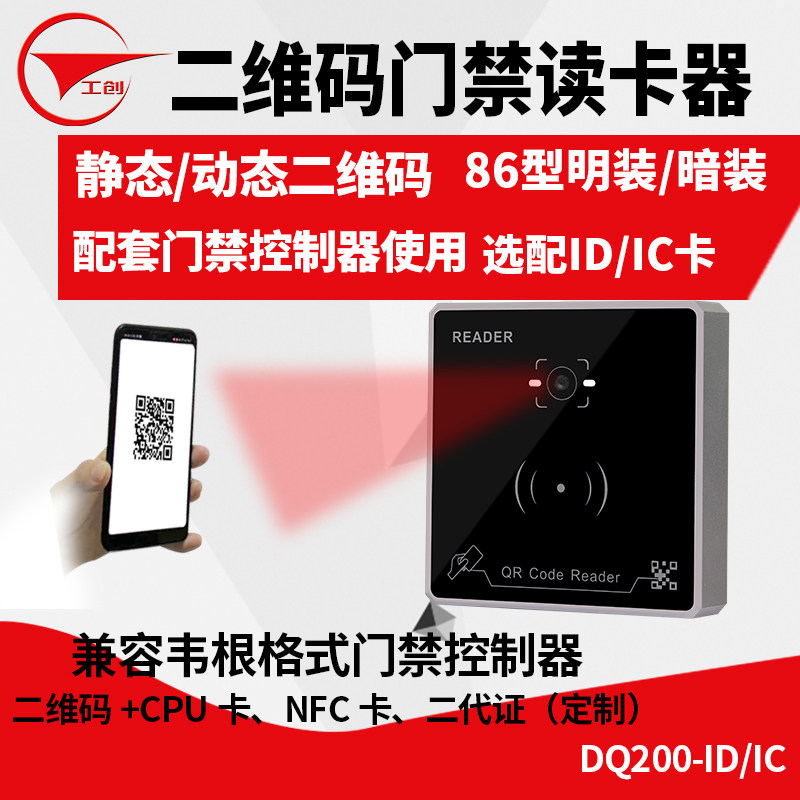 Work-creation brand two-dimensional code access card reader static dynamic two-dimensional code ID card IC card NFC second-generation license access reading head vegan WG format access control controller card reader