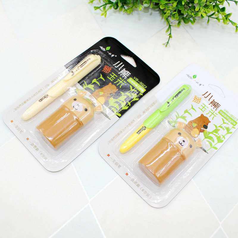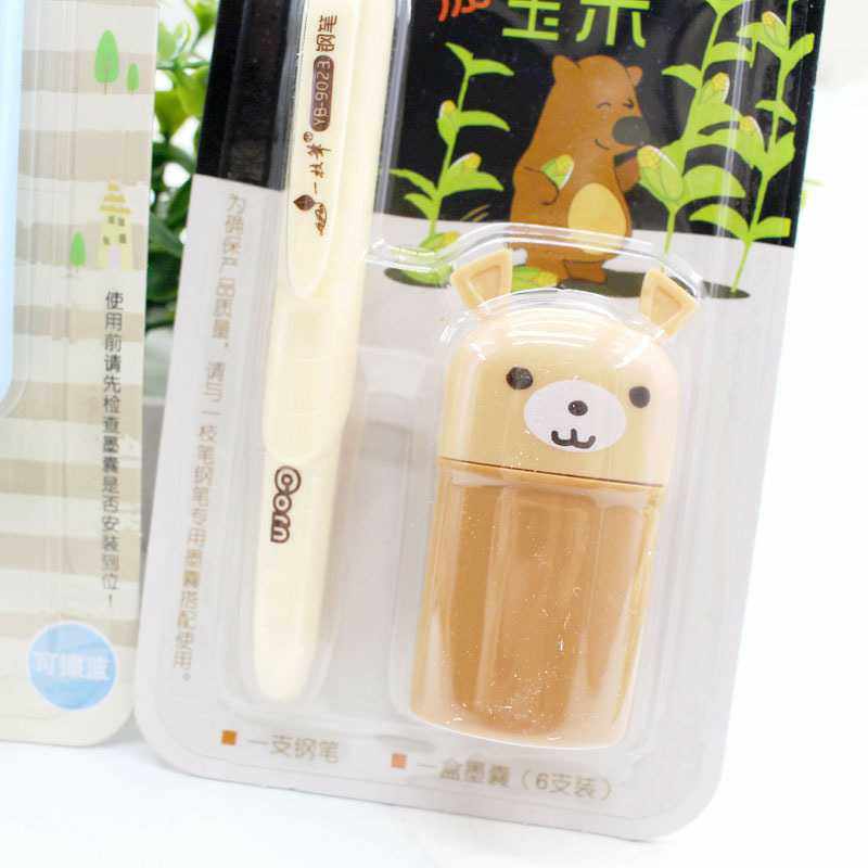 Bear breaking corn replaceable ink sac type pen set 1 pen 6 ink sacs blue 9023 cute