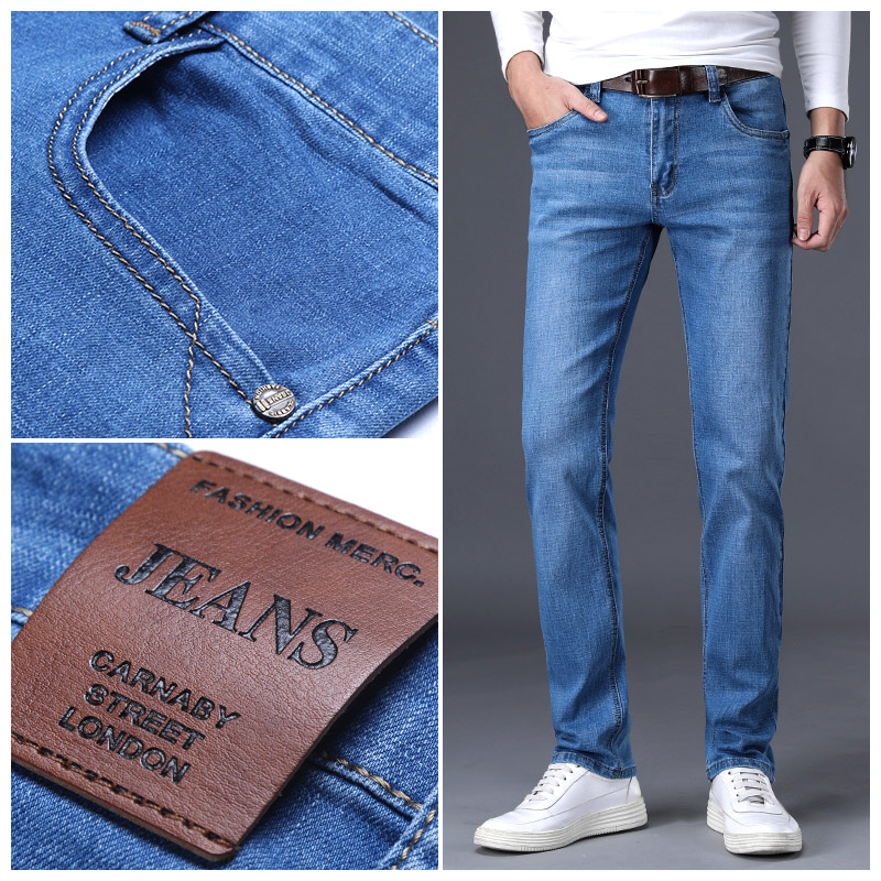 Spring and autumn light blue jeans Men's straight cylinder loose casual long pants trendy 100 hitch middle-aged trendy pants spring