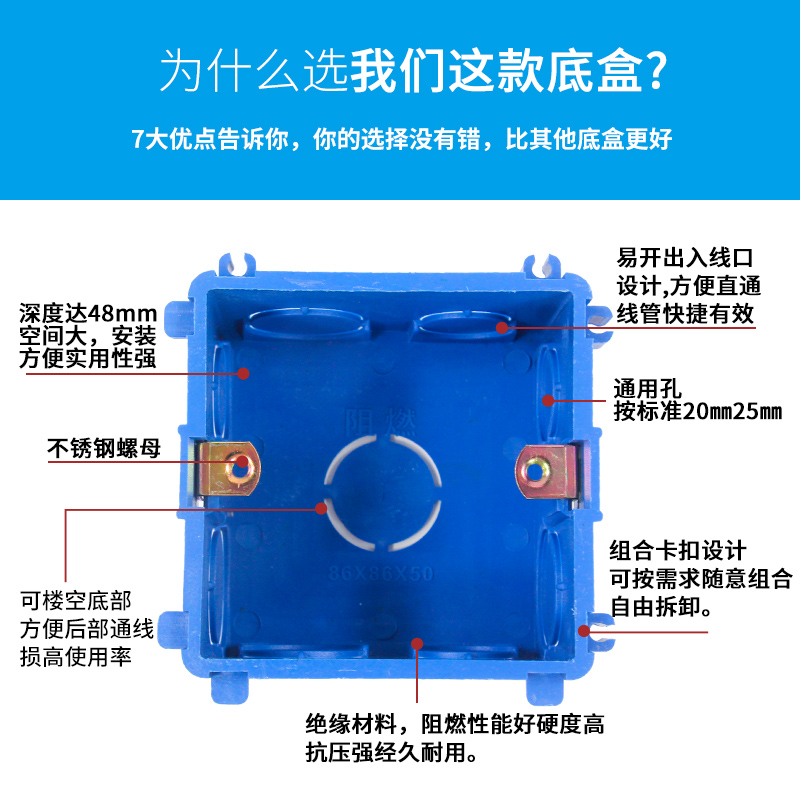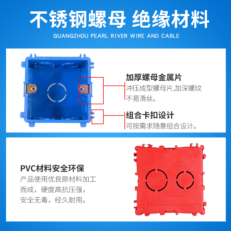 Pearl River red 10 only dark loading bottom case 86 Type universal concealed box switch bottom combined pre-buried box