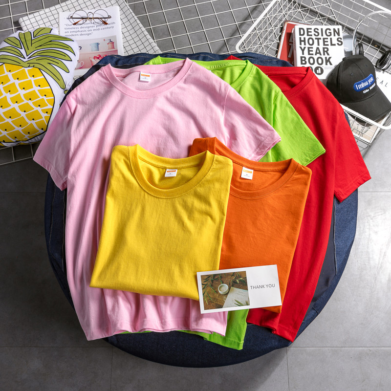 Summer Han Edition Short sleeve T-shirt Men pure color loose collar leisure student couple half-sleeve T-shirt