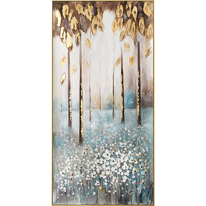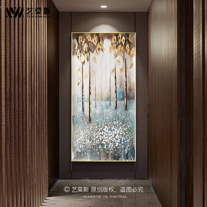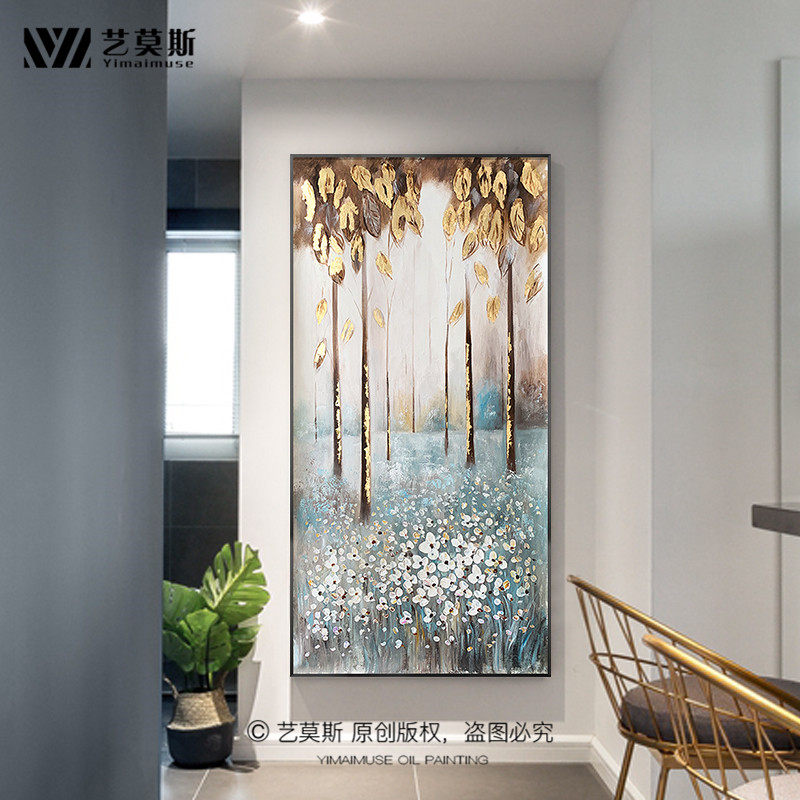 Gold Leaf Hand-painted Oil Painting Hair Treasure Tree Light Luxurious Entrance Aisle Aisle Decoration Painting Vertical version Xuanguan Modern Brief Hanging Paintings