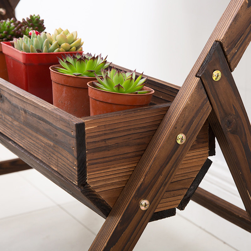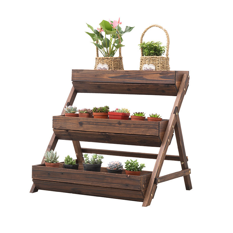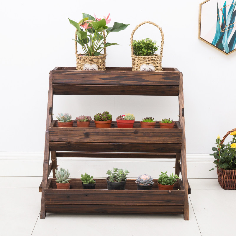 Balcony flower rack rack anti-corrosion carbonized wood flower box flower trough flower pastoral planting vegetable pot three-dimensional flower pot rack