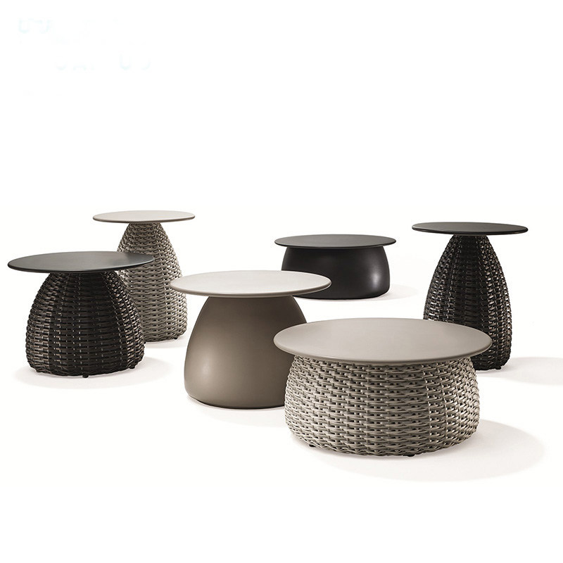 Chinese style outdoor rattan balcony small coffee table model room custom furniture Nordic simple side table round table rattan chair homestay