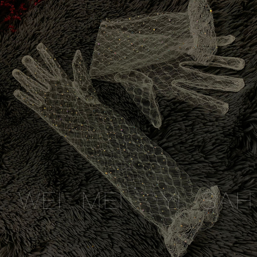 2019 new mesh lace wedding gloves tide shoot bride creative hand yarn photo travel accessories net red long version