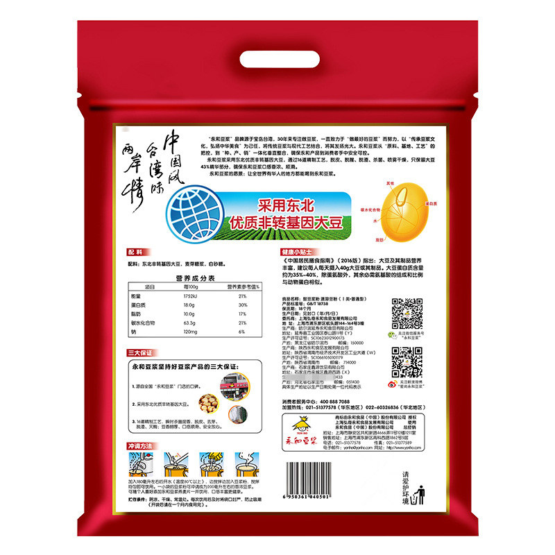 Yonghe Soybean Milk Nutritional Breakfast Hotel Commercial Soon Bean Powder 1200g*2 bags(80 small bags)