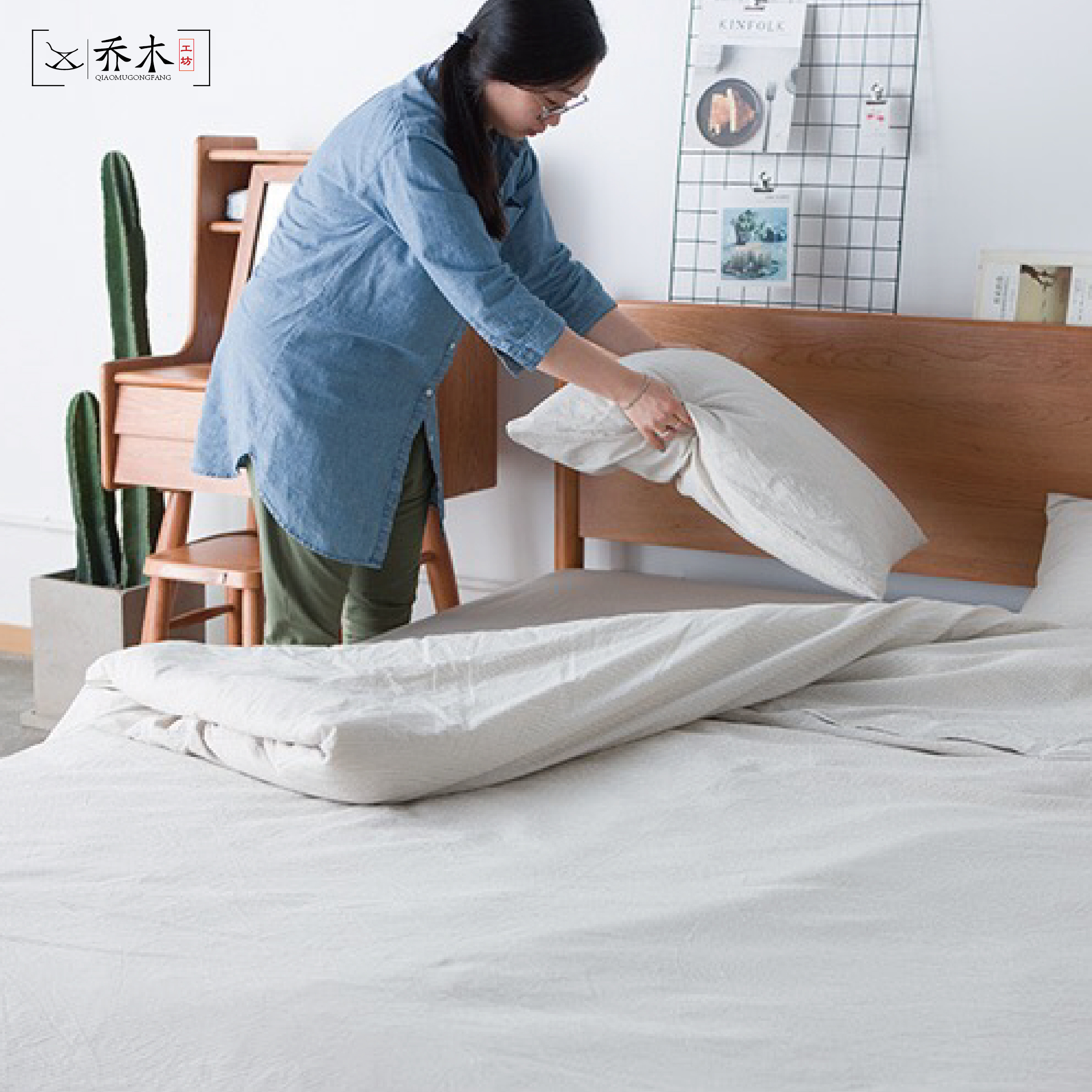 Nordic solid wood bed double bed cherry wood black walnut master bed modern minimalist style bedroom furniture - Taobao