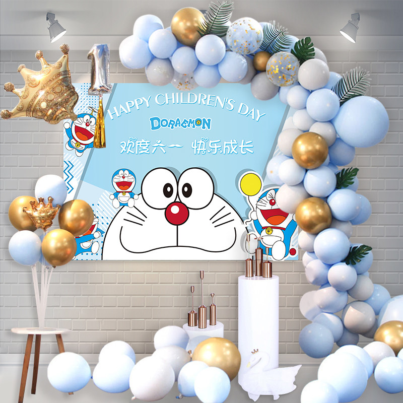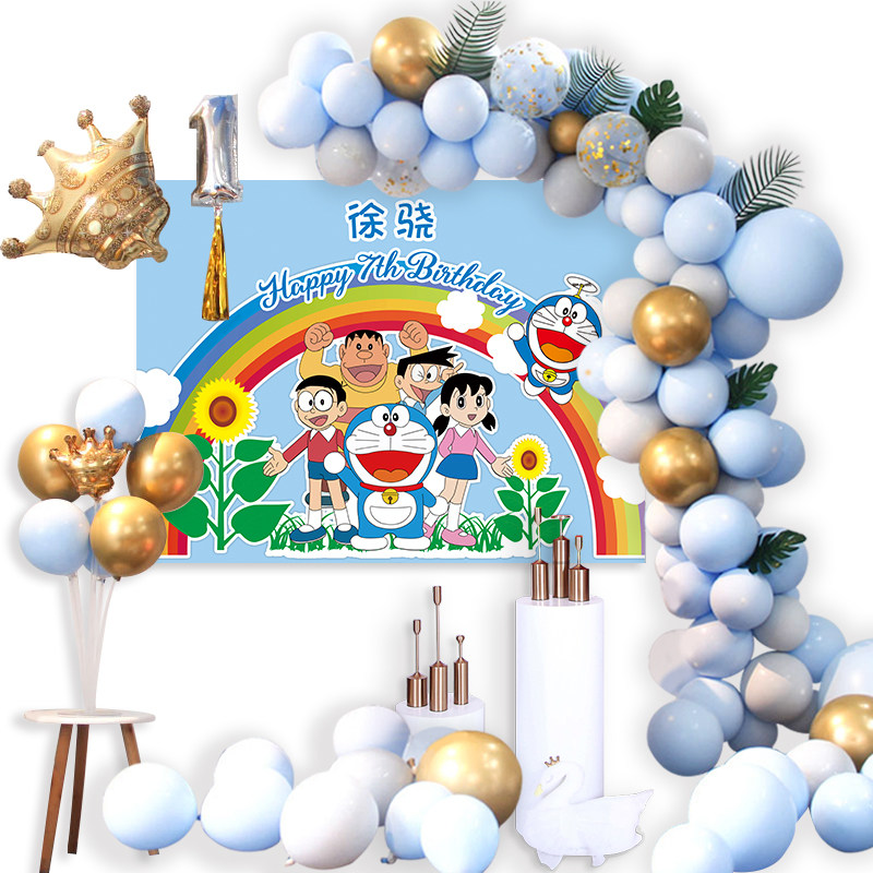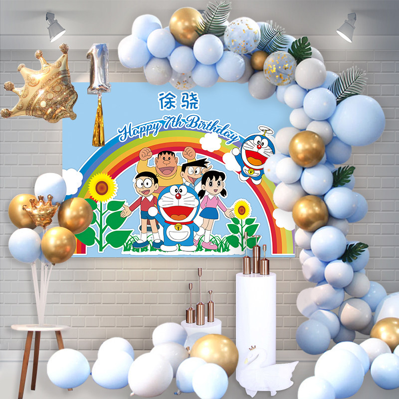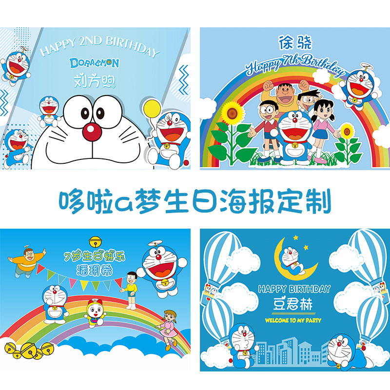 Machine cat Doraemon a dream ding a cat child baby birthday background cloth 100 days old party poster wall custom-Taobao