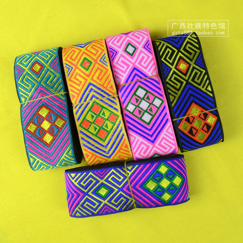 Guangxi Zhuang Zhuang characteristics Zhuang-style brocade pattern text floral lace fabric embroidered ethnic clothes dress decoration with fabric