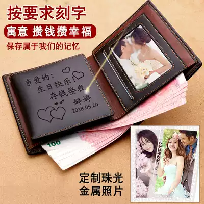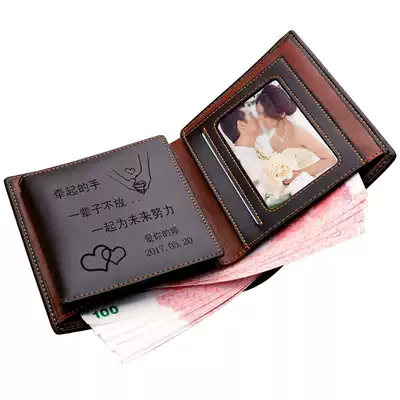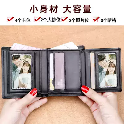 Red (Brown) large capacity men's three fold wallet lettering printed pearlescent metal Photo Gift Box (black) large capacity men's three fold wallet lettering printed Pearl metal photo gift box