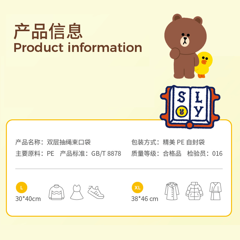 2 co-branded drawstring pocket Brown bears (30*40cm 38*46cm) 2 co-branded drawstring pockets Cony Rabbit (30*40cm 38*46cm) 2 co-branded