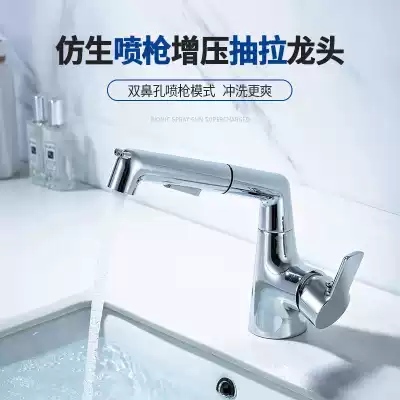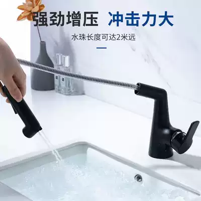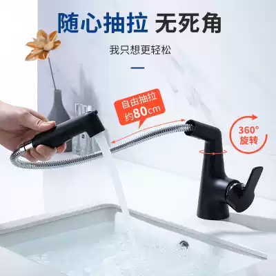 Comanda black pull-out faucet hot and cold washbasin dressing room basin full copper telescopic faucet